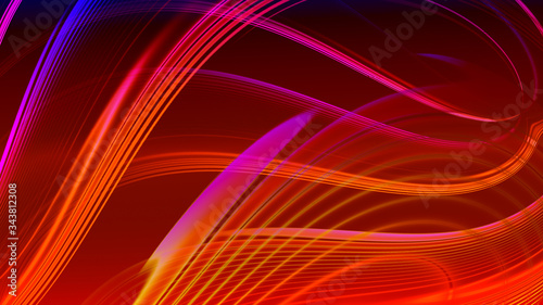 Fototapeta premium Abstract red purple gradient geometric background. Neon light curved lines...