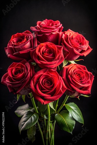 © DND, Fototapeta premium Abstract Red Rose Bouquet on Black Background