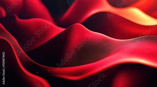 © chesleatsz, Obraz premium Abstract Red Waves Flowing Dark Background