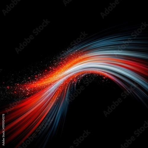 © Narongsag, Obraz premium Abstract Red White Light Trails Glowing Energy Flow Dynamic Background