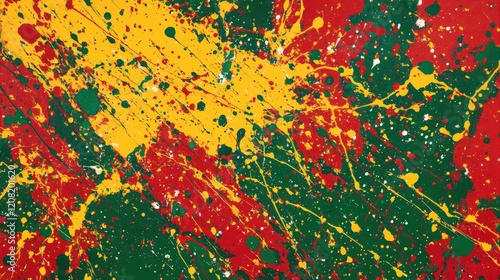 Fototapeta premium Abstract Red Yellow And Green Paint Splatter Artwork
