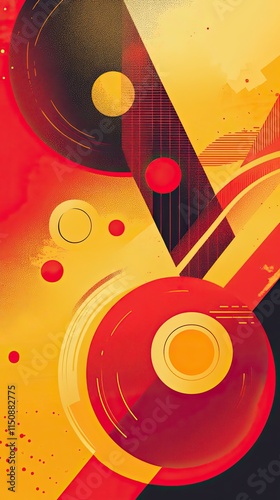 © Hungarian, Obraz premium Abstract Red Yellow Geometric Circular Design