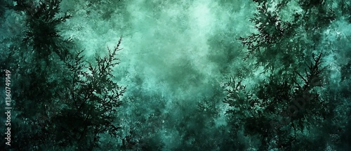 Obraz premium Abstract rendering depicts a dark and misty forest landscape scene