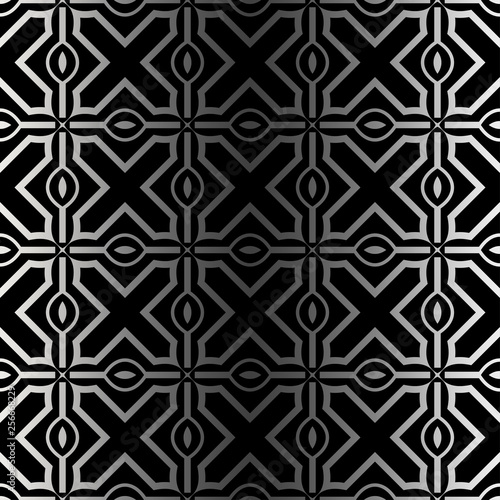 © Bonya Sharp Claw, Fototapeta premium Abstract Repeat Backdrop With Lace Ornament. Seamless Design For Prints, Textile, Decor, Fabric. Super Vector Pattern. Black silver color