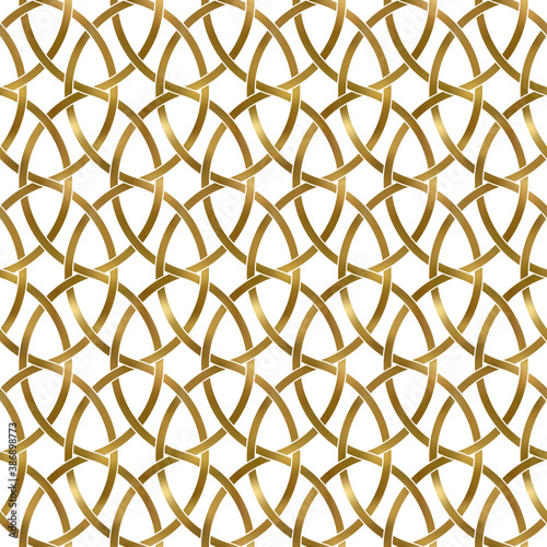Fototapeta premium Abstract repeatable pattern background of golden twisted bands. Swatch of gold intertwined wavy bands. Seamless pattern in modern style.