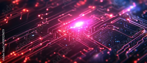 Fototapeta premium Abstract representation of a circuit board with glowing elements, symbolizing...