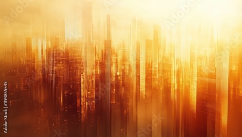 Fototapeta premium Abstract representation of a futuristic city skyline bathed in golden light,...