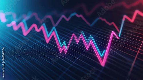 © JAYDA RIN, Naklejka premium Abstract representation of business growth, with digital lines and graphs showing upward trends
