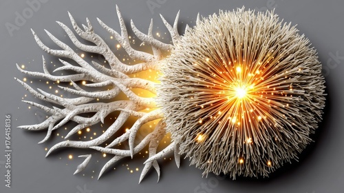 Obraz premium Abstract Representation of Cellular Growth and Transformation with Luminous Elements and Textured Branches