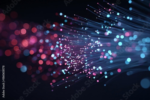 © DesignSells, Fototapeta premium Abstract representation of colorful light trails and bokeh effect in dark background.