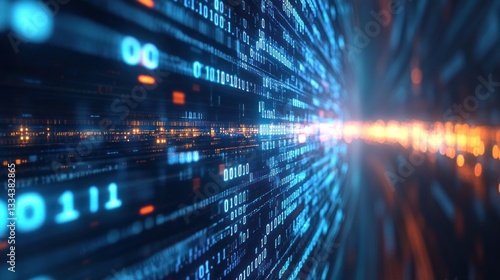 Fototapeta premium Abstract representation of digital data flowing through a futuristic tunnel,...