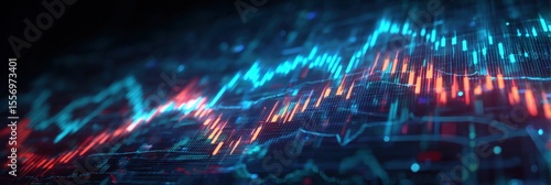 © stocks marketing, Obraz premium Abstract representation of financial market trends with blue and red line graphs data