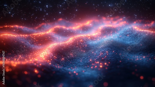 Fototapeta premium Abstract representation of glowing waves in a cosmic landscape.