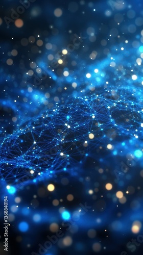 © Georg, Obraz premium Abstract representation of interconnected networks in blue and gold colors illustrating digital connectivity and technology trends