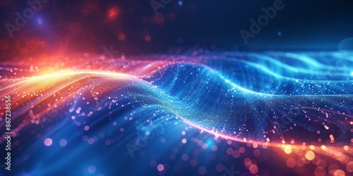 Obraz premium Abstract representation of waves of blue and orange light particles.