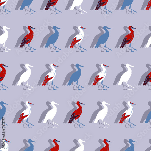© F-lin, Naklejka premium Abstract Retro Stork Bird Art Vector Seamless Patternblacnk600px