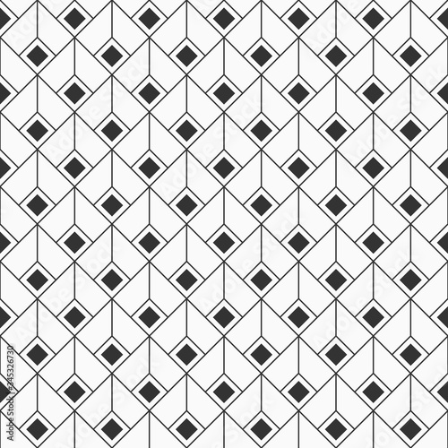 © Andrey, Fototapeta premium Abstract rhombuses seamless pattern. Repeating ethnic ornament. Art Deco style. Ancient mosaic. Digital paper, web, textile print, package. Vector monochrome background.