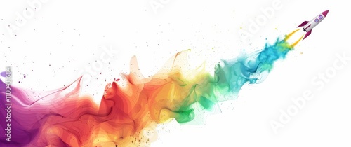 Fototapeta premium Abstract rocket ascends leaving vibrant multicolored trail symbolizing...