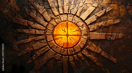 © Thiago, Fototapeta premium Abstract runic carving for the god of the sun. Runic. Illustration