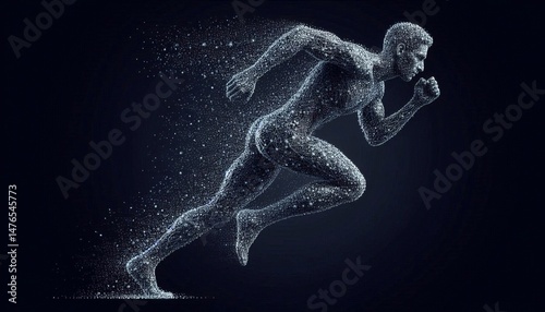 © Cliff, Fototapeta premium Abstract running athlete made of silver particles