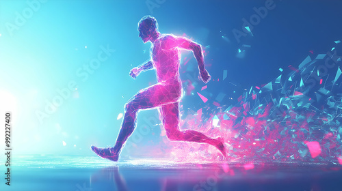 © Neural9 Project, Naklejka premium Abstract Running Figure with Glowing Trail - Futuristic 3D Digital Art, Abstract Background Animation