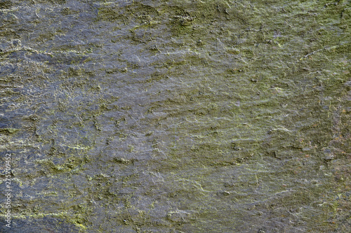 Obraz premium Abstract Rustic aged grey slate wall covered with green moss. Single piece...