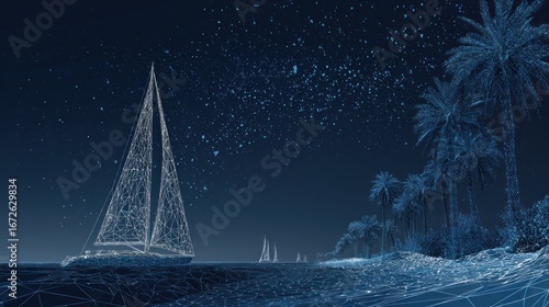 Naklejka premium Abstract sailing scene at night