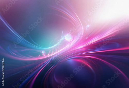 Fototapeta premium Abstract sci-fi background featuring a double exposure effect. Swirling, vibrant pink, purple, and teal light streaks create a dynamic, ethereal composition.