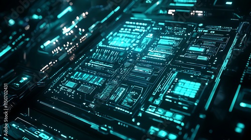 © Matu, Obraz premium Abstract sci-fi interface design with glowing blue and green elements