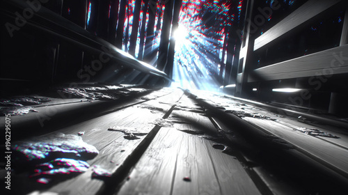 Fototapeta premium Abstract Sci-Fi Tunnel with Bright Digital Glitch Light