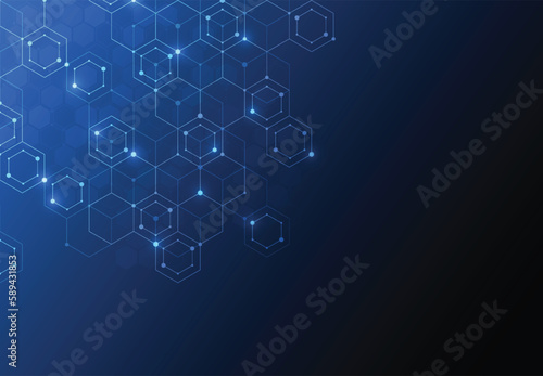 © royyimzy, Fototapeta premium Abstract science template. Technology lines and dots connection background. Wallpaper or banner with a DNA molecules. Vector illustration