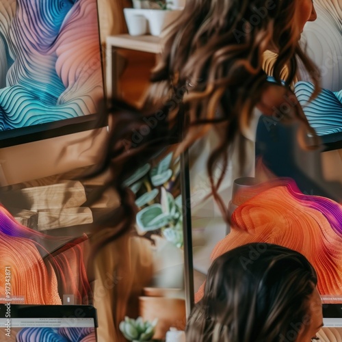 © Iswanto, Obraz premium Abstract Screen Reflections of a Woman.