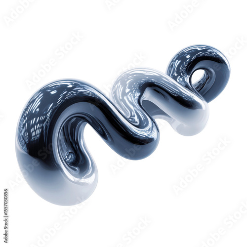 © mohand, Obraz premium Abstract sculpture of flowing, glossy waves in black and white tones with smooth curves and reflective surfaces creating a dynamic visual effect