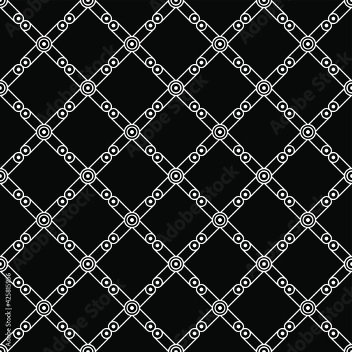 © Дмитрий, Naklejka premium Abstract Seamless Pattern Black Doodle Geometric Figures Background Vector