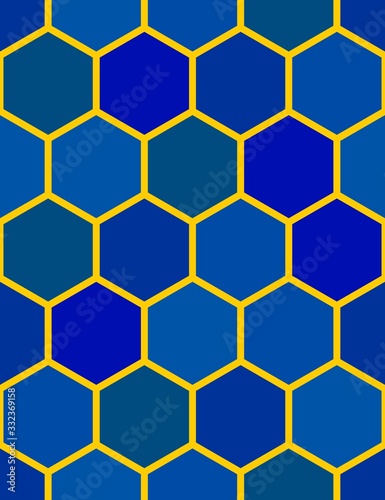 © Ростислав Кузнецов, Obraz premium Abstract seamless pattern with different colored blue hexagons. Vector drawing.