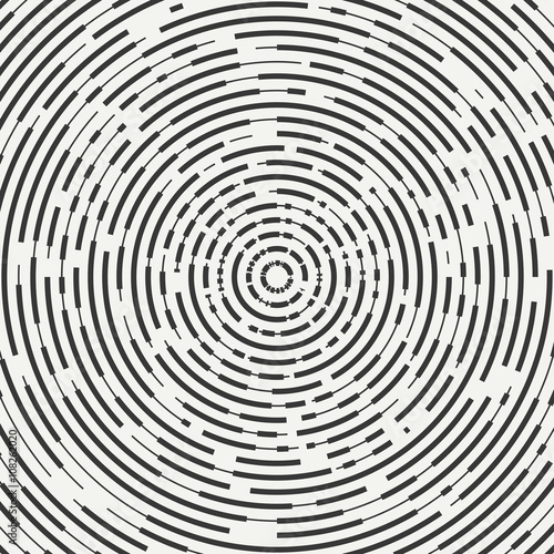 © krolja, Fototapeta premium Abstract segmented geometric circle shape. Radial concentric circles. Rings. Swirly concentric segmented circles. Design element. Random lines. Vector illustration. Graphic texture. Background.
