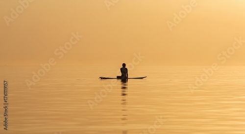 © yahya, Naklejka premium Abstract Serenity: Water and Sky Blending into a Monochromatic Golden Yellow Horizon