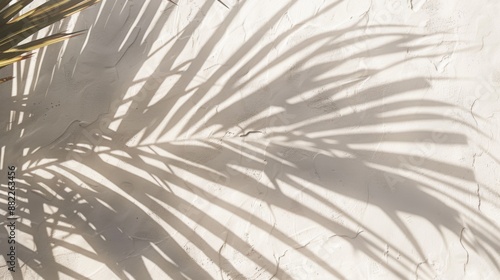 Fototapeta premium Abstract shadow black white palm leaf shadow on a white wall Background....