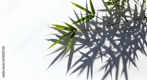 © Reza, Obraz premium Abstract Shadow Play of Bamboo Leaves with Copyspace on a White Background