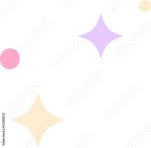 Fototapeta premium Abstract shapes floating in flat design on transparent background, with pastel stars and circles