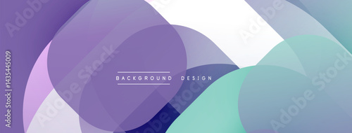 Fototapeta premium Abstract shapes overlap, creating soft gradients. Purple, teal, white hues dominate composition. Minimalist design feels modern, calming.