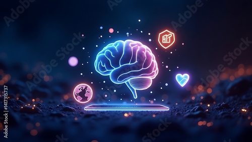 © Generative Media Lab, Obraz premium Abstract shapes vibrant glowing colors futuristic concept image