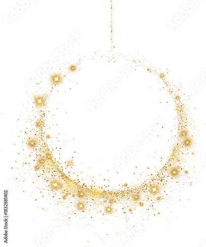 Fototapeta premium Abstract Shiny Gold Glitter Bauble Christmas Circle Frame. Glowing Bokeh and Stars Element