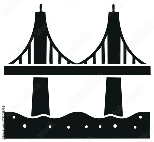 Obraz premium Abstract silhouette of a bridge spanning over water, minimalist illustration.