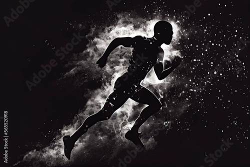 Naklejka premium Abstract silhouette of a running athlete man on the dark, black background