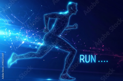 © Werckmeister, Fototapeta premium Abstract silhouette of a running man, "RUN..." written on a blue background
