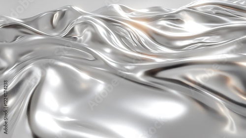 © Astuti, Obraz premium Abstract Silver Fabric Draped Waves Texture Background