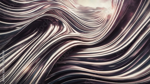 © BRNSN, Obraz premium Abstract silver wavy stripes background