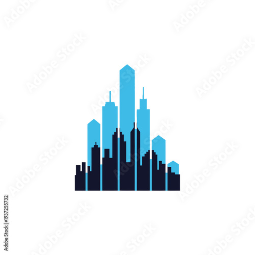 Fototapeta premium Abstract Skyline Featuring Blue and Black Geometric City Silhouette Perfect For Branding Designs