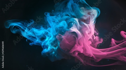 © Darunee, Fototapeta premium Abstract smoke in vibrant colors. Capturing the mystical dance of neon-colored smoke, against a black background.